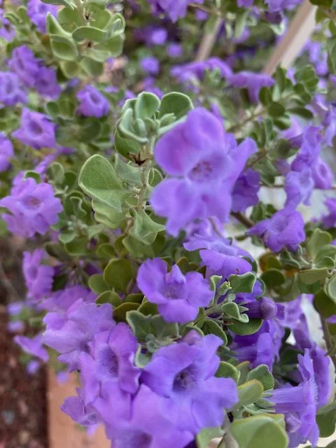 The Cenizo plant (leucophyllum frutescens) is one of the most resilient flowering shrubs of the American Southwest and Mexico. It is a pollinator with silvery foliage and bell-shaped flowers which can be used medicinally. According to legend, it miraculously sprouted after repeated spiritual petitions during a long period of drought and brought rain to the Far West Texas desert.